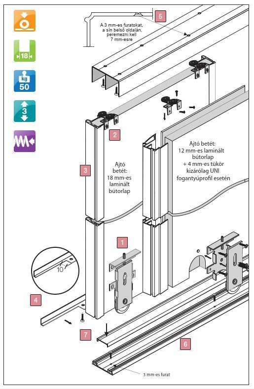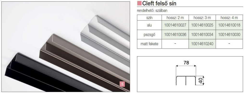 TOLÓAJTÓ BÚTORLAPHOZ CLEFT 2 FELSŐ SÍN 4M ALUMÍNIUM